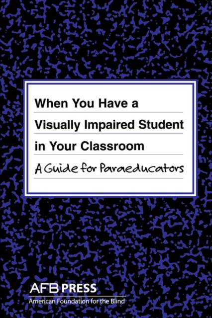 This easy-to-understand guide explains the role of paraeducators (sometimes called classroom aides, teaching assistants, or paraprofessionals) in working with students who are visually impaired and assisting other members of the educational team. When You Have a Visually Impaired Student in Your Classroom: A Guide for Paraeducators provides basic information about visual impairment, the learning needs of visually impaired students, and the special devices and materials they use. Includes easy-to-use forms to help organize information and tasks.