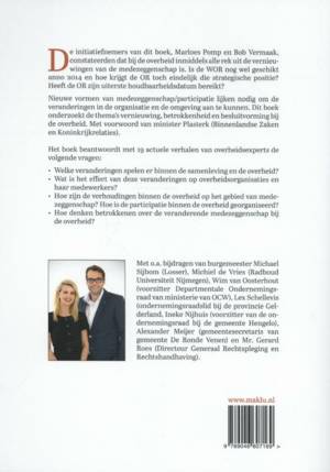 Het boek beantwoordt met 19 actuele verhalen van overheidsexperts de volgende vragen: • Welke veranderingen spelen er binnen de samenleving en de overheid? • Wat is het effect van deze veranderingen op overheidsorganisaties en haar medewerkers? • Hoe zijn de verhoudingen binnen de overheid op het gebied van medezeggenschap? Hoe is de participatie binnen de overheid georganiseerd? • Hoe denken betrokkenen over de veranderende medezeggenschap bij de overheid?