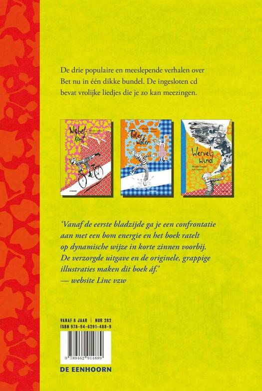 Verzamelbundel over de vrolijke en onstuimige Bet. Populaire reeks boeken van Marijke Umans. Met gratis muziek-cd. Vanaf 8 jaar. De drie populaire en meeslepende verhalen over Bet nu in één dikke bundel. De ingesloten cd bevat vrolijke liedjes die je zo kan meezingen. Bet is energiek en gevoelig. In een gezin met vijf kinderen is het niet makkelijk om op te vallen, maar door haar enthousiasme, fantasie en humor slaagt Bet er vaak in om de aandacht naar zich toe te trekken. Ze heeft het hart op de tong en dat wordt niet altijd gewaardeerd. Het onbegrip van sommige leerkrachten bezorgt Bet soms buikpijn. Gelukkig kan ze rekenen op een begripvolle moeder ...