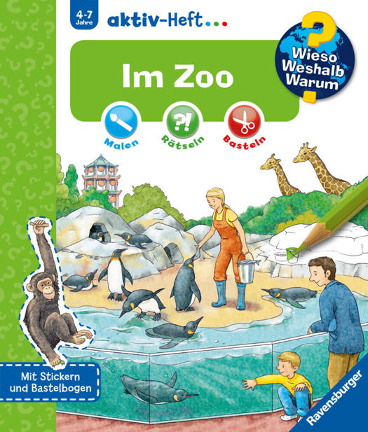 Löwen, Elefanten und Affen - bei einem Ausflug in den Zoo kannst du deine Lieblingstiere hautnah erleben! Aber wie kommen die Tiere eigentlich in den Zoo? Wer kümmert sich dort um sie? Und welche Tiere darfst du im Streichelzoo füttern? Mit Buntstiften und Stickern ausgerüstet erfahren Kinder in diesem Heft alles über den Zoo, helfen dem Tierpfleger bei einem kniffligen Rätsel und basteln ihre eigenen Zootiere. Wieso? Weshalb? Warum? aktiv-Heft Malen, Rätseln und Basteln für Kinder von 4-7 Jahren