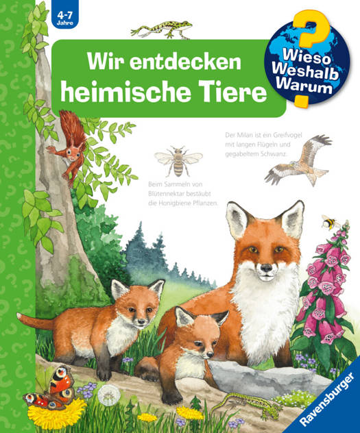 Ob im Garten, im Wald, in den Bergen oder auf dem Feld: Wer genau hinsieht, kann überall Tiere und ihre Spuren entdecken. Wo die Tiere wohnen und wie sie sich an ihren jeweiligen Lebensraum angepasst haben, verrät dieses Buch. Kinder erfahren Spannendes über Rehe, Fledermäuse, Wölfe, Bienen und viele andere heimische Tiere. Durch anschauliche Bilder und viele Klappen sind allerlei Entdeckungen möglich! Mit vielen Tipps zum Tierschutz im Alltag. Wieso? Weshalb? Warum? Die Sachbuchreihe für Kinder von 4-7 Jahren