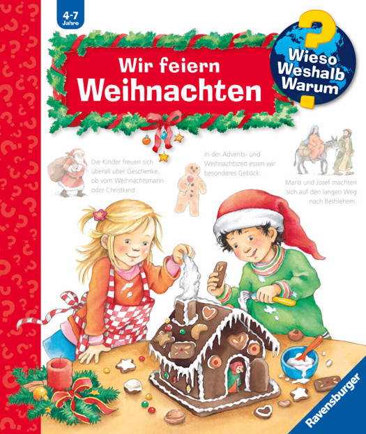 Alle Kinder freuen sich auf Weihnachten und können es kaum erwarten, bis am 24. Dezember endlich Heiligabend ist. Aber warum feiern wir Weihnachten überhaupt? Woher kommt das Schenken? Und wie feiern Kinder in anderen Ländern? Das Buch vermittelt kindgerecht und leicht verständlich, was es mit den Bräuchen in der Adventszeit und dem Weihnachtsfest auf sich hat. Mit emotionalen Bildern, vielen eindrucksvollen Klappen und einfachen Sachtexten ist der Titel der ideale Begleiter für diese besondere Zeit. Wieso? Weshalb? Warum? Die Sachbuchreihe für Kinder von 4-7 Jahren