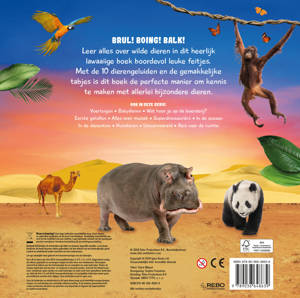 BRUL! BOING! BALK! Leer alles over wilde dieren in dit heerlijk lawaaiige boek boordevol leuke feitjes. Met de 10 dierengeluiden en de gemakkelijke tabjes is dit boek de perfecte manier om kennis te maken met allerlei bijzondere dieren.