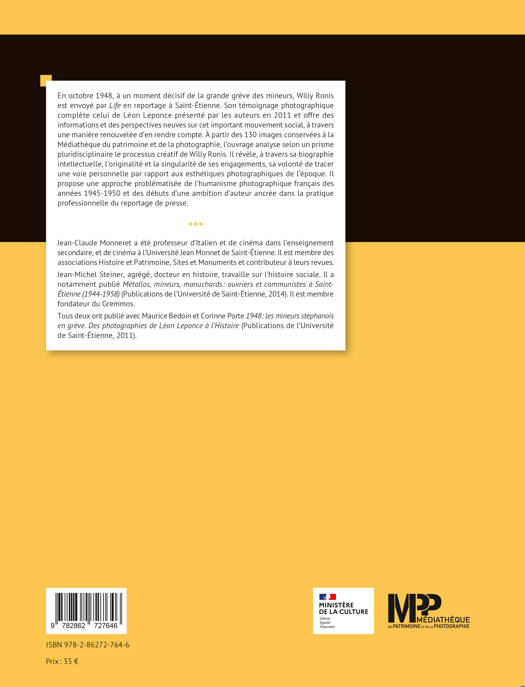 L’ouvrage étudie le reportage que Willy Ronis a fait à Saint-Étienne, en octobre 1948, à un moment décisif de la grande grève des mineurs. Il livre un témoignage complémentaire à celui de Léon Leponce, que les auteurs avaient présenté en 2011, mais selon un regard différent qui offre des informations et des perspectives neuves sur cet important mouvement social. Il analyse sous un prisme pluridisciplinaire le processus créatif de Willy Ronis à partir des 130 images conservées à la Médiathèque de l’Architecture et du Patrimoine.