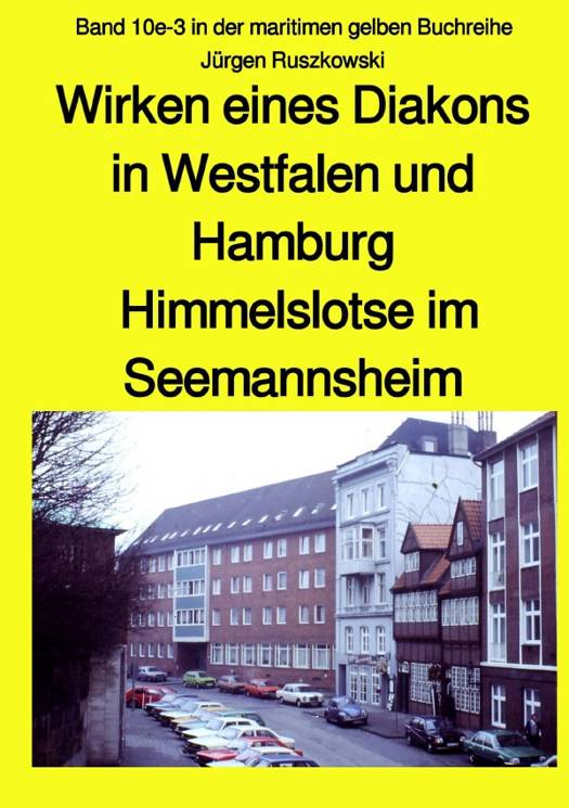 In diesem Teil 3 berichtet der Autor über seine Familiengründung und berufliche Tätigkeit als Fürsorger bei jungen Bergleuten, Stahlwerkern und Bierbrauern in Dortmund, als Geschäftsführer bei der Inneren Mission im malerischen Soest in Westfalen - Organisation von Ferienlagern an Nord- und Ostsee, Holland und Dänemark. Er war 27 Jahre als Heimleiter und Geschäftsführer - "Himmelslotse" - mit Sealords unter einem Dach im Seemannsheim am Krayenkamp in der Weltstadt Hamburg im Schatten des Michels tätig. Die letzten großen Tage deutscher Seemannschaft und ihr langsamer Niedergang engagiert vor Ort miterlebt in unaufdringlicher christlicher Präsens inmitten harter Lebenswirklichkeit "christlicher Seefahrt". - Rückblicke und Reflexionen. Im Teil 4 erzählt er über seinen aktiven Ruhestand in dem er über 100 Bücher, darunter viele Berichte aus der Seefahrt vergangener Jahre, veröffentlichte. - Aus Rezensionen: Ich bin immer wieder begeistert von der "Gelben Buchreihe". Die Bände reißen einen einfach mit und vermitteln einem das Gefühl, mitten in den Besatzungen der Schiffe zu sein. Inzwischen habe ich ca. 20 Bände erworben und freue mich immer wieder, wenn ein neues Buch erscheint. oder: Sämtliche von Jürgen Ruszkowski aus Hamburg herausgegebene Bücher sind absolute Highlights der Seefahrts-Literatur. Dieser Band macht da keine Ausnahme. Sehr interessante und abwechslungsreiche Themen aus verschiedenen Zeitepochen, die mich von der ersten bis zur letzten Seite gefesselt haben! Man kann nur staunen, was der Mann in seinem Ruhestand schon veröffentlicht hat. Alle Achtung!