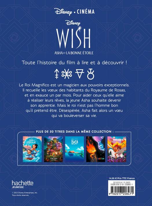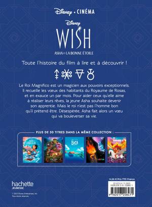Résumé : Le Roi Magnifico est un magicien aux pouvoirs exceptionnels. Il recueille les vœux des habitants du Royaume de Rosas, et en exauce un par mois. Pour aider ceux qu’elle aime à réaliser leurs rêves, la jeune Asha décide de devenir son apprentie. Mais le roi n’est pas l’homme bon qu’il prétend être… Désespérée, Asha fait alors un vœu qui va bouleverser sa vie.