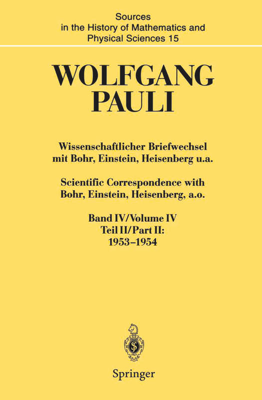 Aus Paulis letztem Lebensjahrzehnt sind über 2000 Briefe erhalten und in diesem grundlegenden Werk zur Physikgeschichte der Nachkriegszeit zusammengefaßt. Neben der Physik wird hier auch der allgemeinere geistesgeschichtliche Hintergrund unserer Naturwissenschaft beleuchtet. Dieser Teilband enthält wissenschaftliche Korrespondez über grundlegende und andere allgemeine Fragen der Physik der 50er Jahre: Elementarteilchen, Erkenntnistheorie und Quantenfeldtheorie. Im besonderen wird hier die Geschichte der frühen Quantenfeldtheorie beleuchtet. Die reich annotierten und kommentierten Briefe sind chronologisch angeordnet und durch Verzeichnisse und Register erschlossen. From the last decade of Paulis life, more than 2000 of his letters have survived. Together they represent a remarkable contribution to the history of post-war physics. In addition to discussing questions of physics they provide illuminating insights into debates on the philosophical and human components of the history of science. This part of Volume IV contains scientific correspondence on foundational and other general problems of physics in the 1950s: elementary particles, epistemology, and quantum field theory. In particular, one can clearly trace the development of the early quantum field theory. Generous annotations and commentary accompany the letters, which are ordered chronologically and listed in registers and an index for easy access.