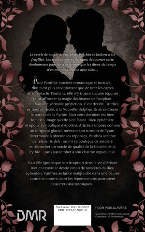 Le cercle de magie de Pasiphaé, Panthéa et Endora a été fragilisé. Les trois sorcières décident de tourner cette douloureuse page sans se douter que les dieux du temps n’en ont pas terminé avec elles… Pour Panthéa, sorcière romantique et incisive, rien n’est plus réconfortant que de tirer les cartes de son oracle. Pourtant, elle n’y trouve aucune réponse pour affronter la magie déclinante de Pasiphaé. Il lui faut une véritable prédiction. C’est décidé, Panthéa se rend en Sicile, à la Nouvelle-Delphes, là où se dresse le temple de la Pythie. Mais cette dernière est bien loin de l’image qu’elle s’en faisait. Dieu éphémère et époux symbolique d’Apollon, Aristée s’impose comme un dirigeant glacial, méritant son surnom de Tyran. Déterminée à obtenir ses réponses, Panthéa accepte de relever le défi : ouvrir sa boutique de sorcière et décrocher un oracle de qualité de la bouche de la Pythie… sans succomber à son charme orgueilleux. Mais elle ignore que son irruption dans la vie d’Aristée met en œuvre le destin empli de mystères du dieu éphémère. Panthéa se lance malgré elle dans une course contre la montre, dont les répercussions pourraient s’avérer cataclysmiques.