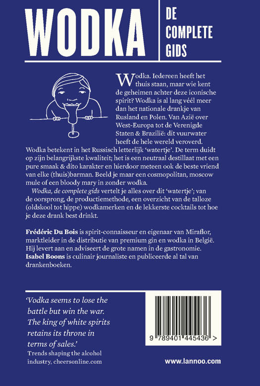 De geheimen achter deze mysterieuze spirit ontrafeld. Wodka is al lang véél meer dan het nationale drankje van Rusland en Polen. Van Azië en Groot-Brittannië tot de Verenigde Staten: dit vuurwater heeft de hele wereld veroverd en is de meest verkochte spirit ter wereld. De term vuurwater duidt op zijn belangrijkste kwaliteit: een neutrale sterkedrank, zonder geur en met een pure smaak, en hierdoor meteen ook de beste vriend van elke barman en de basis van elke cosmopolitan, moscow mule of bloody mary. Wodka, de complete gids vertelt je alles, van de oorsprong, de productiemethode, een overzicht van de talloze wodkamerken en de lekkerste cocktails tot hoe je deze drank het beste drinkt.