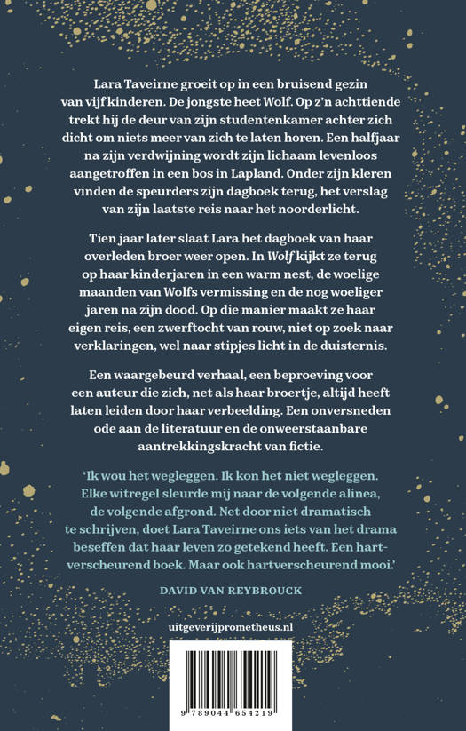Tien jaar later slaat Lara het dagboek van haar overleden broer weer open. Ze kijkt terug op haar kinderjaren in een warm nest, de woelige maanden van Wolfs vermissing en de nog woeliger jaren na zijn dood. In dat verhaal probeert ze een positie in te nemen, als schrijver en als zus. Op die manier maakt ze haar eigen reis, een zwerftocht van rouw, niet op zoek naar verklaringen, wel naar stipjes licht in de duisternis.