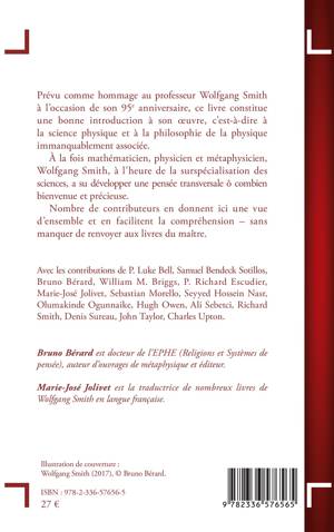 Prévu comme hommage au professeur Wolfgang Smith à l'occasion de son 95e anniversaire, ce livre constitue une bonne introduction à son oeuvre, c'est-à-dire à la science physique et à la philosophie de la physique immanquablement associée. À la fois mathématicien, physicien et métaphysicien, Wolfgang Smith, à l'heure de la surspécialisation des sciences, a su développer une pensée transversale ô combien bienvenue et précieuse. Nombre de contributeurs en donnent ici une vue d'ensemble et en facilitent la compréhension - sans manquer de renvoyer aux livres du maître.