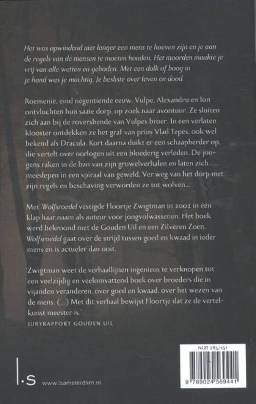 Wolfsroedel is de spraakmakende roman van Floortje Zwigtman (bekend van o.a. Een Groene Bloem-trilogie) waarin ze op vlijmscherpe wijze schrijft over drie jongens die het avontuur zoeken en meegezogen worden in een spiraal van geweld. Dit boek werd bekroond met de Gouden Uil en een Zilveren Zoen.
