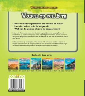 - Hoe komen bergbewoners aan voedsel en water? - Hoe zien huizen er in de bergen uit? - Wat zijn de gevaren als je in de bergen woont? In Wonen op een berg lees je hoe mensen wonen in de bergen, hoe de huizen in de bergen eruitzien en hoe de mensen zichzelf beschermen tegen de sneeuw en de kou.