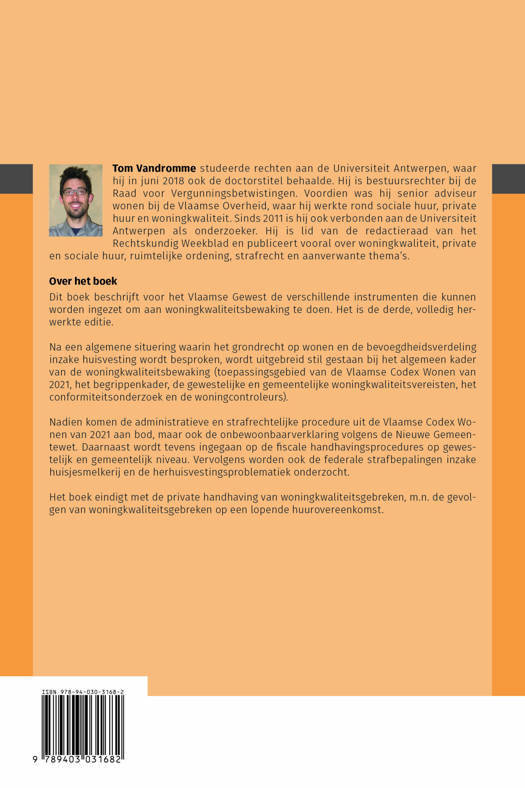 Nadien komen de administratieve en strafrechtelijke procedure uit de Vlaamse Codex Wonen van 2021 aan bod, maar ook de onbewoonbaarverklaring volgens de Nieuwe Gemeentewet. Daarnaast wordt tevens ingegaan op de fiscale handhavingsprocedures op gewestelijk en gemeentelijk niveau. Vervolgens worden ook de federale strafbepalingen inzake huisjesmelkerij en de herhuisvestingsproblematiek onderzocht.