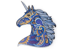 185 piece wooden unicorn jigsaw puzzle, includes wooden storage gift box and stand.