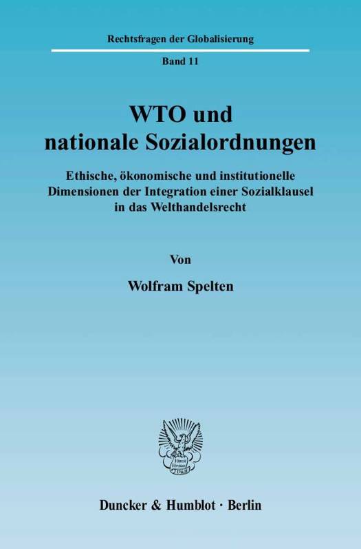 Die Auseinandersetzung ist bisher jedoch unfruchtbar geblieben. Grund hierfür sind die verengte disziplinäre Sichtweise der verschiedenen Beiträge und die Beschränkung des Untersuchungsgegenstandes auf einen engen Kreis von Kernarbeitsnormen. Darüber hinaus ist eine wichtige Analyseebene unterbelichtet geblieben: Bislang ist nicht systematisch erforscht worden, welche Auswirkungen die zunehmende Verrechtlichung der WTO auf nationale Sozialordnungen hat und ob die Integration von Sozialstandards in das Recht der WTO eine geeignete Reaktion auf diese Entwicklung darstellt.