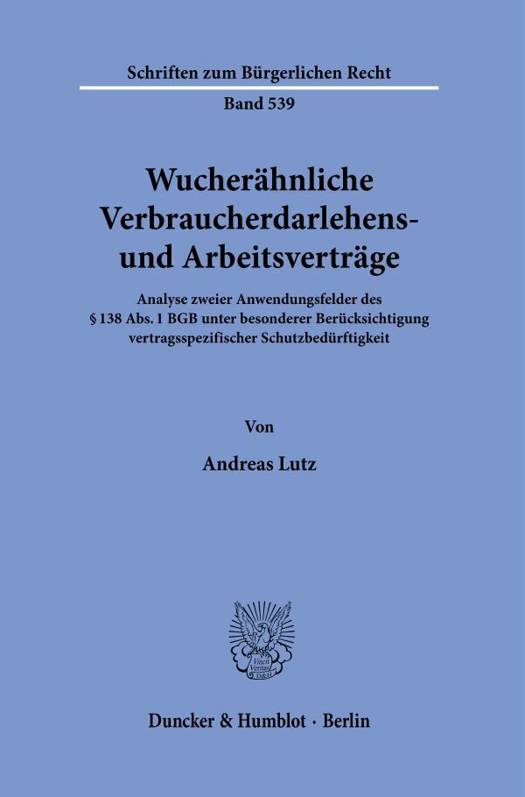 Maagebliches privatrechtliches Instrument zur Aquivalenzkontrolle bei Austauschvertragen ist 138 BGB. Wucher gemaa 138 Abs. 2 BGB lasst sich jedoch nur selten beweisen. Das Reichsgericht, und ihm folgend der Bundesgerichtshof, griffen deshalb bereits fruh auf das wucherahnliche Rechtsgeschaft als Fallgruppe des 138 Abs. 1 BGB zuruck. Insbesondere die Rechtsprechung zu Verbraucherdarlehensvertragen pragte das heutige Verstandnis der Wucherahnlichkeit. Diese dogmatische Grundsteinlegung kann fur die deutlich jungere Diskussion um wucherahnliche Arbeitsvertrage fruchtbar gemacht werden. Wucherahnliche Verbraucherdarlehens- und Arbeitsvertrage setzen mindestens ein Merkmal neben dem auffalligen Missverhaltnis zwischen Leistung und Gegenleistung voraus. Entgegen der herrschenden Auffassung ist dies nicht die verwerfliche Gesinnung des Ubervorteilenden, sondern die vertragsspezifische Schutzbedurftigkeit des Ubervorteilten. Diese ist fur jeden Vertragstypus gesondert zu ermitteln.