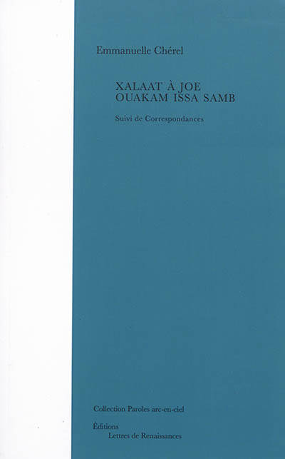 Le recueil Xalaat d'Emmanuelle Chérel est atypique et étonnant. Composé de courts fragments poétiques, avec une langue riche, très imagée et précise, la poétesse, éprise des formes et des couleurs, nous invite à un dialogue. Une conversation intime entretenue avec le grand artiste, Issa Samb alias Joe Ouakam, l'ami, le frère, poète des couleurs et des mots.