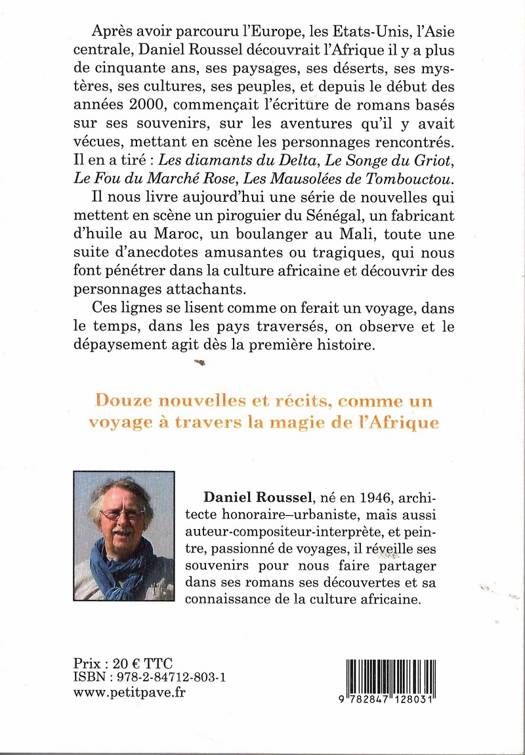 Recueil de douze nouvelles se déroulant en Afrique et mettant en scène un piroguier sénégalais, un fabricant d'huile marocain ou encore un boulanger malien. Elles sont suivies de dictons et de proverbes sahéliens.