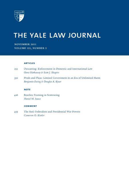 Yale Law Journal: Volume 121, Number 2 - November 2011, contents include: