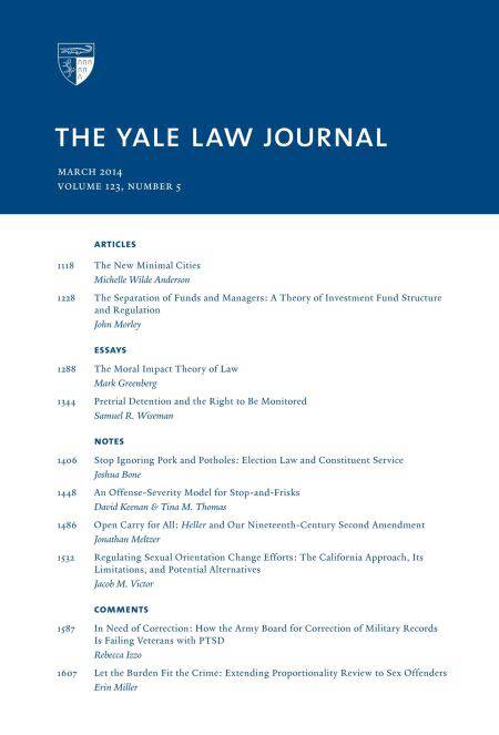 The March 2014 issue of The Yale Law Journal features new articles and essays on law and legal theory by internationally recognized scholars. The contents for Volume 123, Number 5, include: