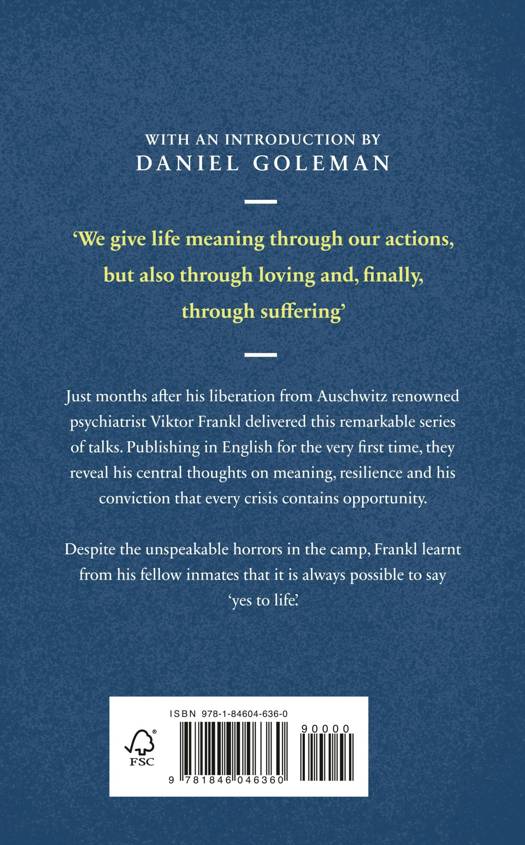 Published here for the very first time in English, Frankl's words resonate as strongly today as they did in 1946. Despite the unspeakable horrors in the camp, Frankl learnt from his fellow inmates that it is always possible to say ‘yes to life’ – a profound and timeless lesson for us all.