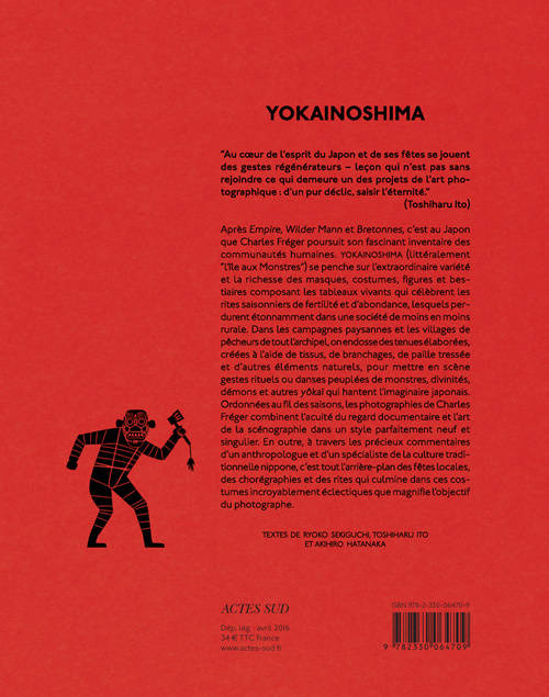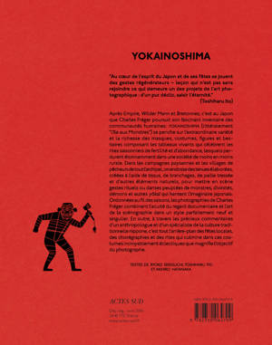 Avec «Yokainoshima», c'est au Japon que Charles Fréger, photographe de réputation internationale, poursuit son fascinant inventaire des communautés humaines. Une fois encore, ses photographies combinent l'acuité du regard documentaire avec l'art de la mise en scène selon un style parfaitement neuf et singulier. Ordonnées au fil des saisons, elles évoquent, à travers l'extraordinaire variété des masques, costumes ou figures, et les commentaires d'anthropologues et spécialistes de la culture traditionnelle japonaise, tout l'arrière-plan de fêtes locales, de chorégraphies et de rites, qui culmine dans ces costumes étonnamment éclectiques. Cette remarquable suite de portraits passionnera les amateurs de mode et de traditions populaires, mais aussi les adeptes de l'imaginaire des mangas.
