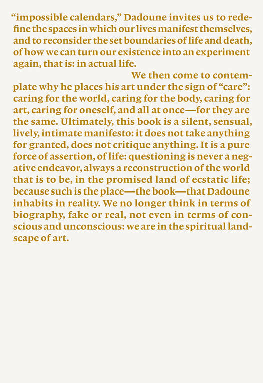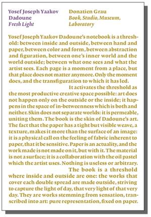 ⦠des couleurs vives et des compositions spontanées, un espace imaginaire spirituel à la fois intime et contemplatif, des traces de voyages intérieurs, au seuil du monde visible et du monde invisible, une offrande de bonheur aux couleurs du monde, des champs de fenouil sauvages, Cyprès plantés en rideaux brise-vent, arbres-passeurs des âmes, être surpris par ce que j'ai fait. Joseph Dadoune