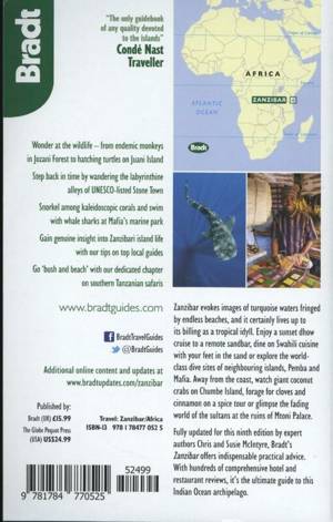 A new, thoroughly updated ninth edition of the most comprehensive guide to Zanzibar available, with a complete review of accommodation listings to cover new options in all price brackets on all three main islands (over 300 properties visited personally). Also included is more detailed coverage of Zanzibar's cultural, historic and environmental status than in any other travel guide, while many of the city/town/village maps have been redrawn and accurately updated, with every property, major attraction, eatery and road recorded. The authors aim to direct readers to the more ethically minded hotels, tour operators and activities, from a focus on fair-trade shopping to marine awareness guidelines. Bradt's Zanzibar is the most frequently updated book on the islands: the authors are personally known for their face-to-face, on-the-ground research methods and this is the book of choice for hoteliers and expatriate workers/residents on Zanzibar. The guide also includes a dedicated section on southern Tanzanian safaris in the Selous and Ruaha National Park, making this the ideal choice for a bush and beach combination.Zanzibar is a magical and evocative name, and for many travellers, the name alone is reason enough to come, as is testified by the growing number of post-safari visitors from the USA. The islands are magical and full of promise but the choices are vast: from the burgeoning hotel scene to the array of operators offering seemingly the same trip. The authors have been visiting Zanzibar for more than 15 years and strive to provide all the information required to make the right choice of where to stay and how to make the most of your time on the islands, as well as offering details of how to get off the beaten track. They say: 'a tremendous amount of change has taken place, and yet it remains impossible not to be enchanted as you approach from the air, looking down on sparkling turquoise waters, darkened only by patch reefs, and punctuated by the billowing triangular white sails of passing dhows. We still always smile as we step off the plane, to be enveloped by Zanzibar's exotic blend of warmth, humidity and aromatic spices.'
