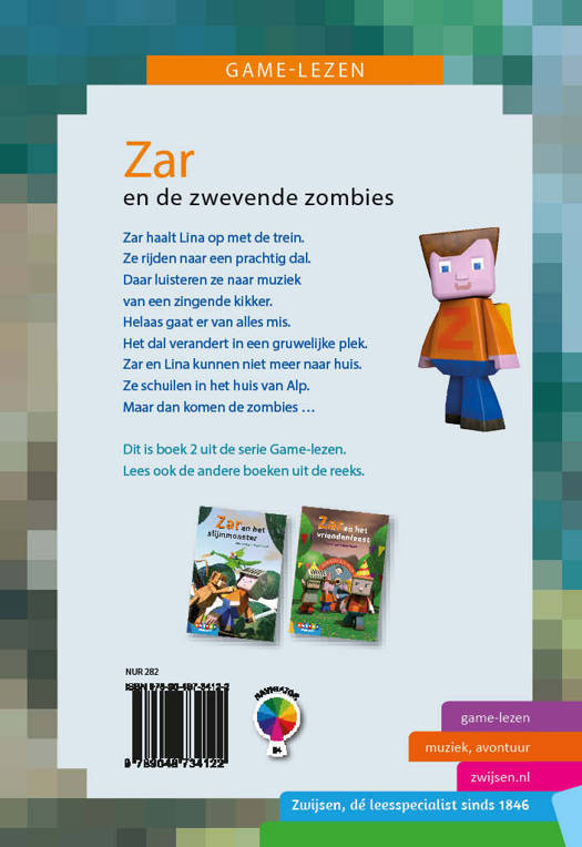 Zar en Lina zitten in een spel en beleven allerlei spannende avonturen. Dit boek heeft AVI E4. Zar haalt Lina op met de trein. Ze rijden naar een prachtig dal. Daar luisteren ze naar muziek van een zingende kikker. Helaas gaat er van alles mis. Het dal verandert in een gruwelijke plek. Zar en Lina kunnen niet meer naar huis. Ze schuilen in het huis van Alp. Maar dan komen de zombies ...