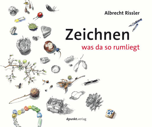 »Alles Zeichnen ist nützlich und Alles zeichnen auch.« Unter diesem Motto steht das neue Buch von Albrecht Rissler. »Zeichnen was da so rumliegt« richtet den Blick auf die kleinen Objekte, die mit aufmerksamen Augen überall zu entdecken sind. Auf einem Spaziergang im nahen Park oder auf einer Wanderung findet sich manch kleine Schönheit, die sich zuhause als hervorragendes Studienobjekt erweist. Zum Beispiel stellt eine Handvoll Walderde im Grunde dieselbe zeichnerische Herausforderung dar wie ein Landschaftspanorama. Auch eine Forschungsreise durch die eigene Wohnung oder das Atelier kann eine Menge zeichnenswerte Gegenstände zutage fördern: Eingetrocknete Tuben im Malzeug, Unnützes in der Küchenschublade, längst Vergessenes im Näh- und Werkzeugkasten oder Teile des ausgeweideten alten Kofferradios warten darauf, gezeichnet zu werden.