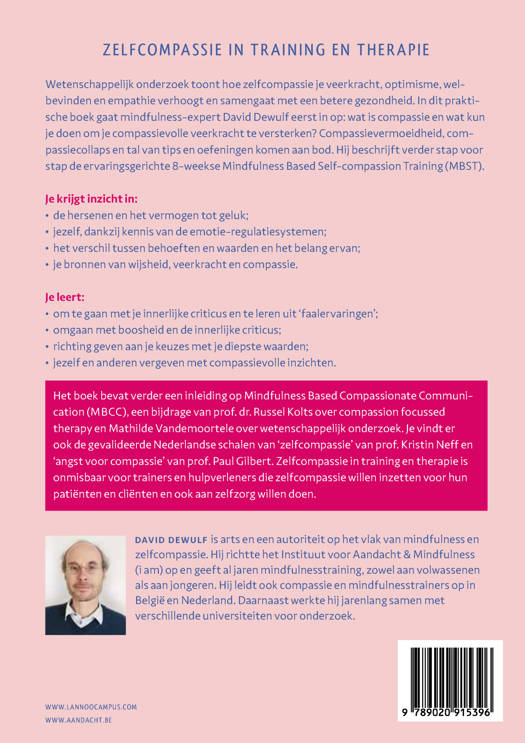 Wetenschappelijk onderzoek toont hoe zelfcompassie je veerkracht, optimisme, welbevinden en empathie verhoogt en samengaat met een betere gezondheid. In dit praktische boek gaat mindfulness-expert David Dewulf eerst in op: wat is compassie en wat kun je doen om je compassievolle veerkracht te versterken? Compassievermoeidheid, compassiecollaps en tal van tips en oefeningen komen aan bod. Hij beschrijft verder stap voor stap de ervaringsgerichte 8-weekse Mindfulness Based Self-compassion Training (MBST).