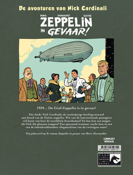 Dat denkt Nick Cardinali, de zestienjarige leerling-steward aan boord van de Duitse zeppelin. Wie van de internationale passagiers wil koste wat kost de wereldreis dwarsbomen? En hoe kan een jongen als Nick die plannen stoppen? Een spannend avontuur wacht hem in een van de indrukwekkendste vliegmachines van de twintigste eeuw! Vrij gebaseerd op de roman Zeppelin in gevaar van Boris Darnaudet.