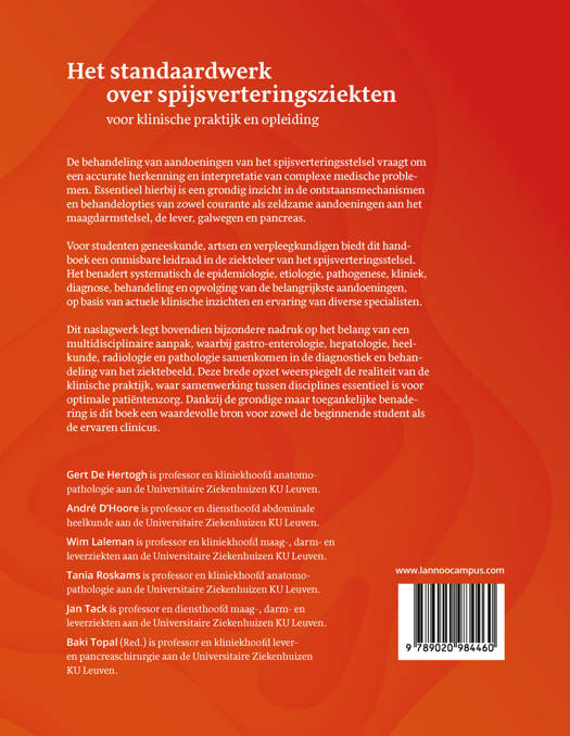 De behandeling van aandoeningen van het spijsverteringsstelsel vraagt om een accurate herkenning en interpretatie van complexe medische problemen. Essentieel hierbij is een grondig inzicht in de ontstaansmechanismen en behandelopties van zowel courante als zeldzame aandoeningen aan het maagdarmstelsel, de lever, galwegen en pancreas. Voor studenten geneeskunde, artsen en verpleegkundigen biedt dit handboek een onmisbare leidraad in de ziekteleer van het spijsverteringsstelsel. Het benadert systematisch de epidemiologie, etiologie, pathogenese, kliniek, diagnose, behandeling en opvolging van de belangrijkste aandoeningen, op basis van actuele klinische inzichten en ervaring van diverse specialisten. Dit naslagwerk legt bovendien bijzondere nadruk op het belang van een multidisciplinaire aanpak, waarbij gastro-enterologie, hepatologie, heelkunde, radiologie en pathologie samenkomen in de diagnostiek en behandeling van het ziektebeeld. Deze brede opzet weerspiegelt de realiteit van de klinische praktijk, waar samenwerking tussen disciplines essentieel is voor optimale patiëntenzorg. Dankzij de grondige maar toegankelijke benadering is dit boek een waardevolle bron voor zowel de beginnende student als de ervaren clinicus.