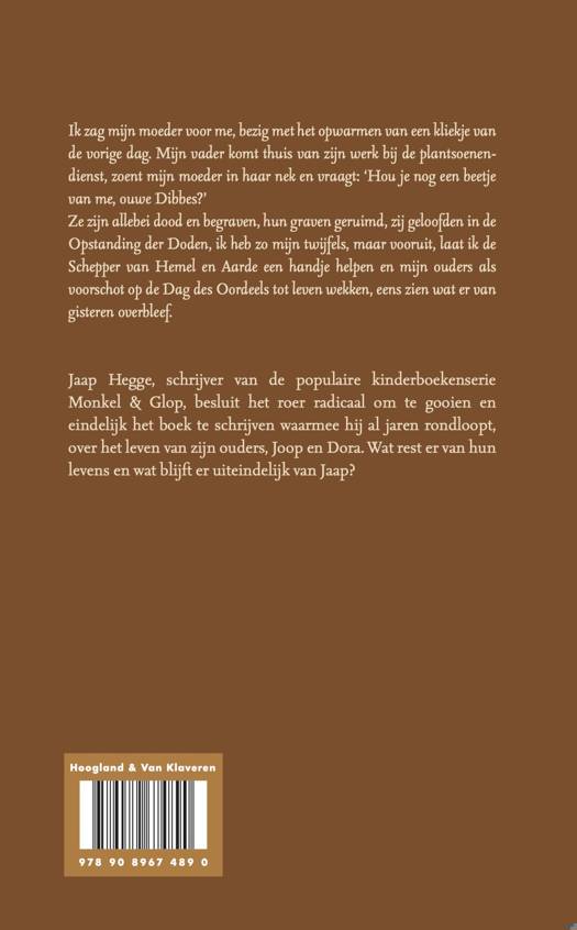 Jaap Hegge, schrijver van de populaire kinderboekenserie Monkel & Glop, besluit het roer radicaal om te gooien en eindelijk het boek te schrijven waarmee hij al jaren rondloopt, over het leven van zijn ouders, Joop en Dora. Wat rest er van hun levens en wat blijft er uiteindelijk van Jaap?