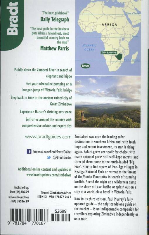 This new third edition of Bradt's Zimbabwe remains the most authoritative and trusted guide available, written in an engaging and entertaining style by an expert author who has been visiting Zimbabwe annually for nearly 30 years and now spends six months of each year there. In this new thoroughly revised edition, Paul Murray brings a particular focus for those wanting to travel independently as well as visitors on organised tours. Game viewing in some of Africa's greatest national parks is a rewarding experience and this guide offers in-depth information on the facilities, advice on itinerary planning as well as how to select a safari. Accommodation is covered with up-to-date information on everything from luxury safari camps to budget stays for younger travellers who arrive overland, heading for the fast flowing waters of the Zambezi gorge. There are also details of en-route accommodation not found in other guides following a complete countrywide review of all destinations that are key to independent travellers, making this by far the most up-to-date guidebook to Zimbabwe on the market. As political tension relaxes, wildlife enthusiasts and curious tourists are returning to Zimbabwe, a country which not so long ago was southern Africa's premier tourist destination, with some of the finest national parks in Africa, stunning landscapes and an abundance of wildlife. The mighty Zambezi River offers adventure holidays, and Victoria Falls will leave visitors breathless, while the range of birdlife draws enthusiasts year-round.