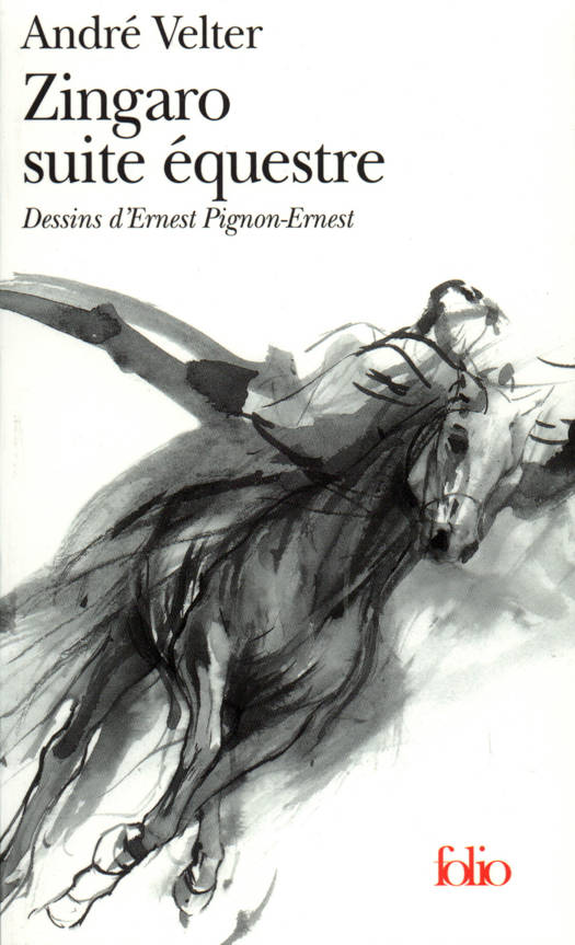 "Sur la peau d'un monde rétréci, livré aux lois sinistres des sédentaires, l'aventure Zingaro s'impose comme un défi exaltant, fabuleux, irréductible aux nouvelles normes planétaires. Ici une tribu venue de nulle part choisit aussi bien ses ancêtres que ses rites, ses légendes que son mode de vie, avec pour seule mystique et seul viatique l'amour des chevaux. Cette insolence originelle, en tout point "cavalière", a fait du Théâtre équestre mené par Bartabas une entreprise sans autre exemple qui allie révolte et maîtrise, effort et liberté, fureur et quête spirituelle. C'est ce parcours de rupture radicale que j'ai tenu à célébrer, tant la poésie vécue est indissociable pour moi d'un engagement physique, éthique et esthétique : précisément ce qui est à l'oeuvre chez Zingaro. Rythmé par vingt dessins d'Ernest Pignon-Ernest, un grand galop de mots : à l'évidence un témoignage d'amitié et de complicité, mais qui tire sa légitimité d'une admiration alertée, sans cesse revivifiée. Je tiens en effet Bartabas, toutes catégories artistiques confondues, pour le plus grand créateur de ce temps." André Velter.