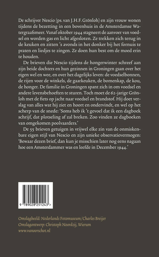 De brieven die Nescio tijdens de hongerwinter schreef aan zijn beide dochters en hun gezinnen in Groningen gaan over het eigen wel en wee, en over het dagelijks leven: de voedselbonnen, de rijen voor de winkels, de gaarkeuken, de bomenkap, de kou, de honger. De familie in Groningen spant zich in om voedsel en andere levensbehoeften te sturen. Toch moet de 62-jarige Grönloh met de fiets op jacht naar voedsel en brandstof. Hij doet verslag van alles wat hij ziet en hoort en ondervindt, en wel op het scherp van de snede: 'Soms heb ik 't gevoel dat ik een dagboek schrijf, dat plotseling af zal breken. Zoo vinden ze dagboeken van omgekomen poolvaarders.'