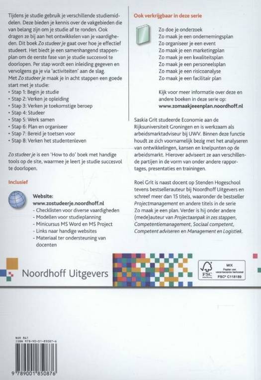 Zo studeer je ondersteunt een goede voorbereiding en actieve houding van de student en voorkomt daarmee voortijdige uitval. Studenten kunnen de uitgave zelfstandig gebruiken. De uitwerkingen van de opdrachten kunnen zij toevoegen aan hun portfolio.