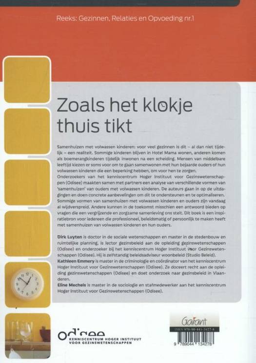 Samenhuizen met volwassen kinderen: voor veel gezinnen is dit – al dan niet tijdelijk – een realiteit. Sommige kinderen blijven in Hotel Mama wonen, anderen komen als boemerangkinderen tijdelijk inwonen na een scheiding. Mensen van middelbare leeftijd kiezen er soms voor om te gaan samenwonen met hun bejaarde ouders of hun volwassen kinderen die een beperking hebben, om voor hen te zorgen. Onderzoekers van het kenniscentrum Hoger Instituut voor Gezinswetenschappen (Odisee) maakten samen met partners een analyse van verschillende vormen van ‘samenhuizen’ van ouders met volwassen kinderen. De auteurs gaan in op de uitdagingen en doen concrete aanbevelingen om dit te ondersteunen en te optimaliseren. Sommige vormen van samenhuizen met volwassen kinderen en ouders zijn vandaag al wijdverspreid. Andere kunnen in de toekomst misschien een antwoord bieden op vragen die een vergrijzende en zorgzame samenleving ons stelt. Dit boek is een inspiratiebron voor iedereen die professioneel, beleidsmatig of persoonlijk te maken heeft met samenhuizen van volwassen kinderen en hun ouders.