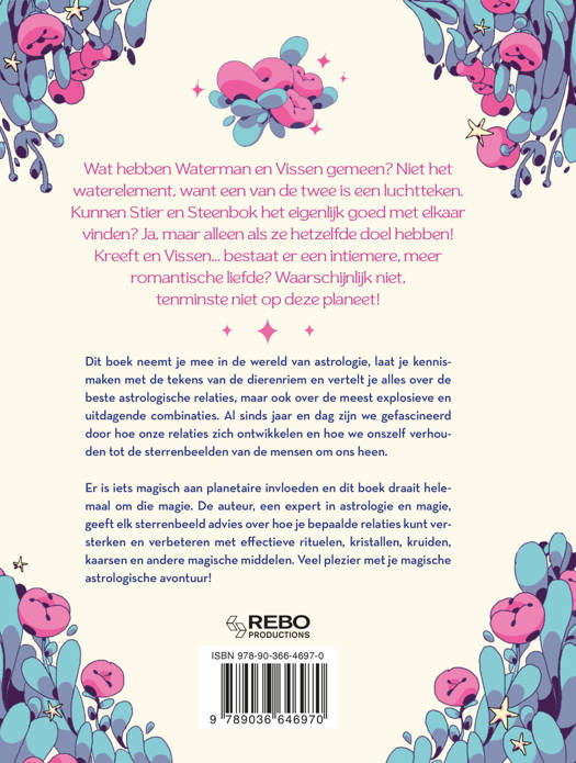 Dit boek neemt je mee in de wereld van astrologie, laat je kennismaken met de tekens van de dierenriem en vertelt je alles over de beste astrologische relaties, maar ook over de meest explosieve en uitdagende combinaties. Al sinds jaar en dag zijn we gefascineerd door hoe onze relaties zich ontwikkelen en hoe we onszelf verhouden tot de sterrenbeelden van de mensen om ons heen. Er is iets magisch aan planetaire invloeden en dit boek draait helemaal om die magie. De auteur, een expert in astrologie en magie, geeft elk sterrenbeeld advies over hoe je bepaalde relaties kunt versterken en verbeteren met effectieve rituelen, kristallen, kruiden, kaarsen en andere magische middelen. Veel plezier met je magische astrologische avontuur!