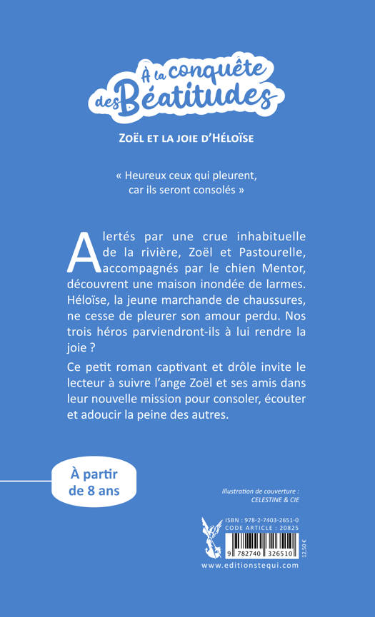 Alertés par une crue inhabituelle de la rivière, Zoël et Pastourelle accompagnés par le chien Mentor découvrent une maison inondée de larmes. La jeune marchande de chaussures, Héloïse Giret, ne cesse de pleurer depuis que son amoureux (le séduisant Thermidor) l'a abandonnée. Elle ne nourrit plus ses oiseaux, n'arrose plus ses plantes, et ne va plus travailler. Aidés par le bataillon des vieilles dames de la paroisse (mais pas seulement !), nos trois héros parviendront-ils à lui rendre la joie et à chasser le Démon du Désespoir caché dans le placard à balais ? « Heureux ceux qui pleurent, ils seront consolés » et consoleront à leur tour ! La deuxième mission de nos trois héros, Zoël, Pastourelle et le chien Mentor, sera suivie de beaucoup d’autres pour faire découvrir les Béatitudes aux lecteurs.