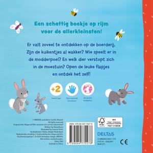 Dit schattige boekje op rijm neemt de allerkleinsten mee op ontdekkingstocht op de boerderij. Zijn de kuikentjes al wakker? Wie spettert er in de modderpoel? En welk dier verstopt zich in de moestuin? Open de pop-upflapjes en kijk zelf wat er achter zit. Met dit boek ontdek je en speel je tegelijk en het openen van de stevige flapjes stimuleert de fijne motoriek. Een vrolijk boek vol flapjes, rijmpjes en dierenpret!