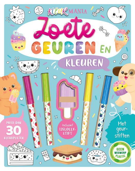 In dit boek vind je meer dan 30 fantastische kleurplaten. Met de 4 geurstiften en de grappige ijslollystift kun je geur en kleur geven aan de schattigste cupcakes, kittens, puppy's, eenhoorns en nog veel meer. Met dit boek ben je uren zoet!