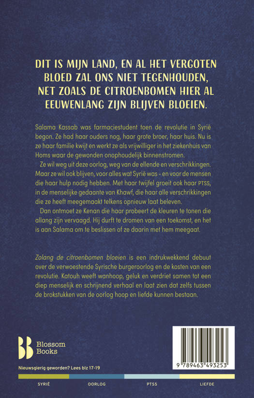 'Zolang de citroenbomen bloeien' is een hartverscheurend verhaal over de verwoestende Syrische burgeroorlog – de bombardementen, de sluipschutters en de gifgasaanvallen – maar herinnert de lezer ook aan de tijd voor de oorlog – de bloeiende citroenbomen, de vrolijkheid, de geuren en kleuren. Dit boek schiet van wanhoop naar geluk en van geluk weer naar verdriet. Zelfs tussen de brokstukken van de oorlog kunnen hoop en liefde bestaan.