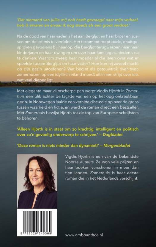 'Zomerhuis' van Vigdis Hjorth is een aangrijpende roman over schuld en vergeving, die in Noorwegen voor veel controverse zorgde. Er ontstond een fel literair debat rond 'Zomerhuis', net zoals bij Knausgård, over de vraag wat waarheid is en wat fictie in een roman. Wat doet het met diegenen die zichzelf herkennen in de personages? Tot hoever mag je gaan? Vigdis Hjorth heeft al een indrukwekkende literaire carrière opgebouwd en is een van de bekendste Noorse schrijvers. Hjorth heeft meerdere prijzen op haar naam. Haar boeken verschenen in meer dan tien landen. 'Zomerhuis' is haar eerste roman in het Nederlands.