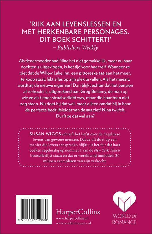 Als tienermoeder had Nina het niet gemakkelijk, maar nu haar dochter is uitgevlogen, is het tijd voor haarzelf. Wanneer ze ziet dat de Willow Lake Inn, een pittoreske b&baan het meer, te koop staat, lijkt alles op zijn plek te vallen. Als het meezit, wordt zíj de nieuwe eigenaar! Dan blijkt echter dat het pension al verkocht is, uitgerekend aan Greg Bellamy, de man op wie ze als tiener straalverliefd was, maar die haar toen niet zag staan. Nu doet hij dat wel, maar alleen omdat hij in haar de perfecte bedrijfsleider van de b&bziet! Nina twijfelt. Durft ze dat wel aan?