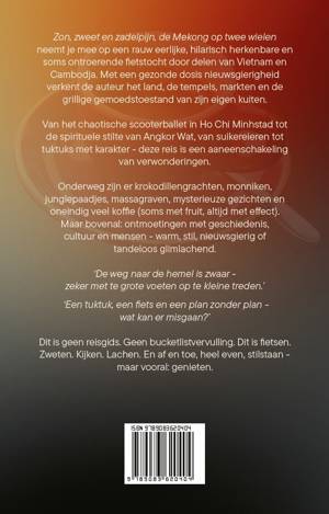 Zon, zweet en zadelpijn, de Mekong op twee wielen neemt je mee op een rauw eerlijke, hilarisch herkenbare en soms ontroerende fietstocht door delen van Vietnam en Cambodja. Met een gezonde dosis nieuwsgierigheid verkent de auteur het land, de tempels, markten en de grillige gemoedstoestand van zijn eigen kuiten.