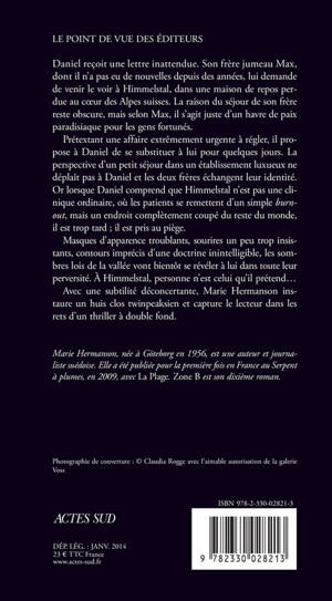 Prétextant une affaire extrêmement urgente à régler, il propose à Daniel de se substituer à lui pour quelques jours. La perspective d'un petit séjour dans un établissement luxueux ne déplaît pas à Daniel et les deux frères échangent leur identité. Or lorsque Daniel comprend que Himmelstal n'est pas une clinique ordinaire, où les patients se remettent d'un simple burnout, mais un endroit complètement coupé du reste du monde, il est trop tard ; il est pris au piège.