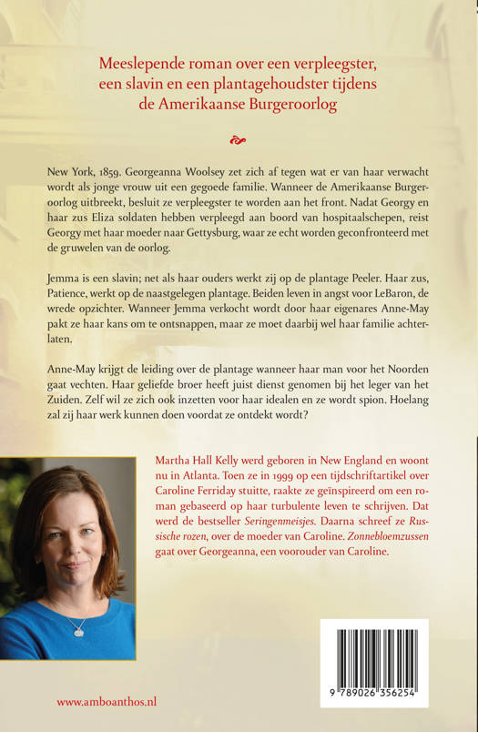 New York, 1859. Georgeanna Woolsey zet zich af tegen wat er van haar verwacht wordt als jonge vrouw uit een gegoede familie. Wanneer de Amerikaanse Burgeroorlog uitbreekt, besluit ze verpleegster te worden aan het front. Nadat Georgey en haar zus Eliza soldaten hebben verpleegd aan boord van hospitaalschepen, reist Georgy met haar moeder naar Gettysburg, waar ze echt worden geconfronteerd met de gruwelen van de oorlog. Jemma is een slavin; net als haar ouders werkt zij op de plantage Peeler. Haar zus, Patience, werkt op de naastgelegen plantage. Beiden leven in angst voor LeBaron, de wrede opzichter. Wanneer Jemma verkocht wordt door haar eigenares Anne-May pakt ze haar kans om te ontsnappen, maar ze moet daarbij wel haar familie achterlaten. Anne-May krijgt de leiding over de plantage wanneer haar man voor het Noorden gaat vechten. Haar geliefde broer heeft juist dienst genomen bij het leger van het Zuiden. Zelf wil ze zich ook inzetten voor haar idealen en ze wordt spion. Hoelang zal zij haar werk kunnen doen voordat ze ontdekt wordt? 'Zonnebloemzusjes' is het derde boek in de Woolsey-Ferriday-reeks, meeslepende romans gebaseerd op ware gebeurtenissen, over drie vrouwen en hun strijd voor vrijheid, gerechtigheid en tweede kansen.